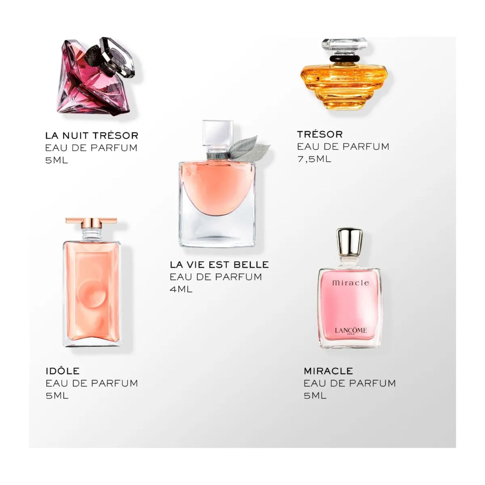 La Vie Est Belle 4ml+Tresor 7.5ml+Miracle 5ml+Idole 5ml+La Nuit Tresor 5ml
